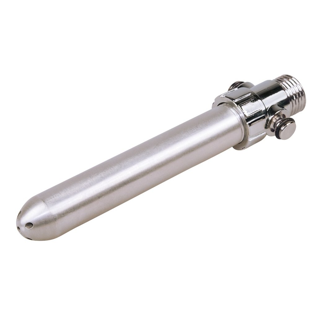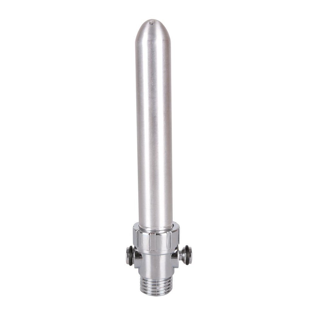Stříbrná anální sprcha s 5 rozstřikovacími otvory v horní části a standardní závitová hlavicí s uzavíracím ventilem, která zajistí vypnutí a opětovné zapnutí vody bez změny teploty a tlaku vody. Navíc není nasáván žádný vzduch.
