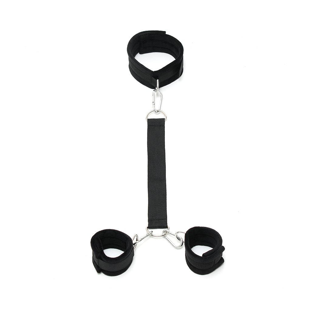 Sada pro lehkou bondáž a SM. Balení obsahuje černý popruh s D kroužky na obou koncích, černá pouta na ruce a obojek na krk. Obojí s D kroužky a mohutnými karabinkami s možností odepnutí. Pouta i obojek jsou vyrobeny z jemného materiálu, rozměr je stavitelný pomocí suchých zipů, je tedy použitelný pro ženy i muže.