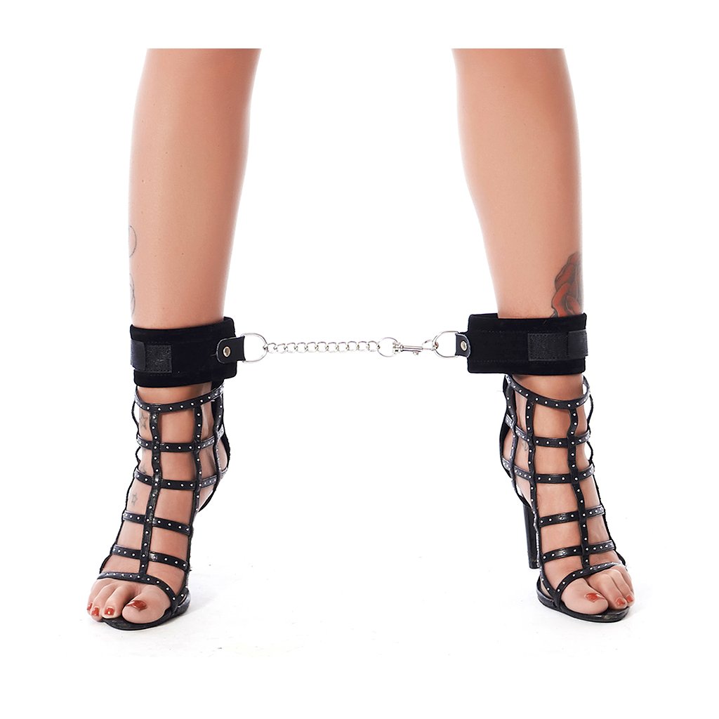 3. Pouta na nohy s D kroužky a karabinkou - spojená kovovým řetízkem (řetízek je možné na jedné straně odepnout).