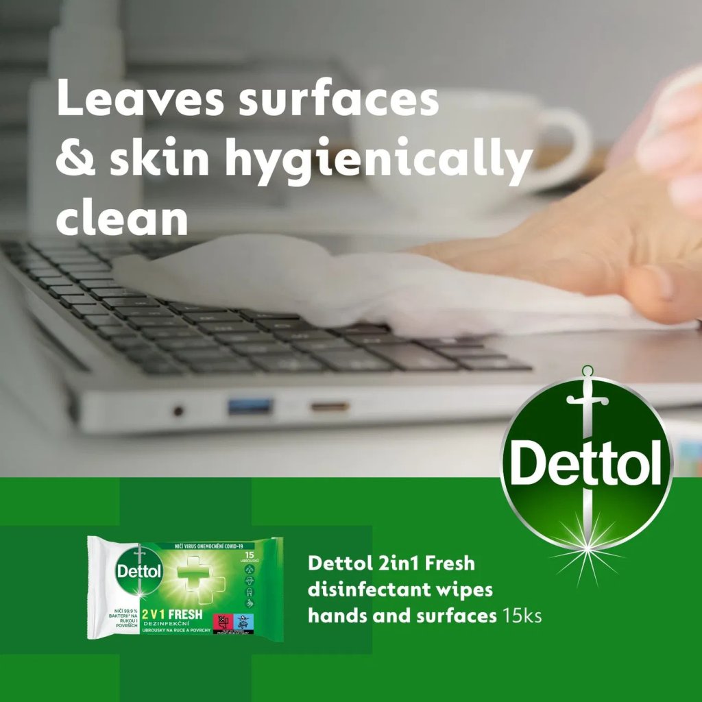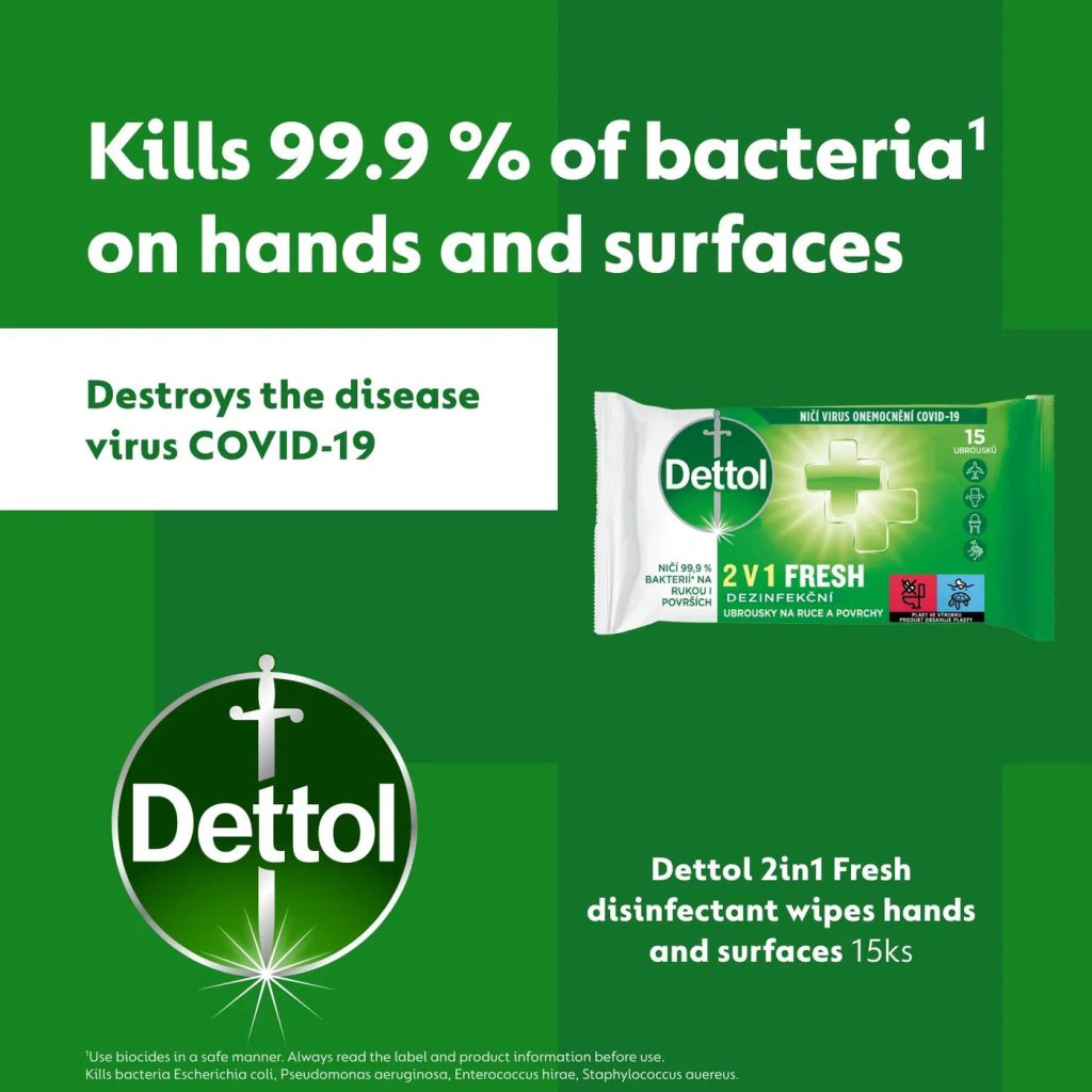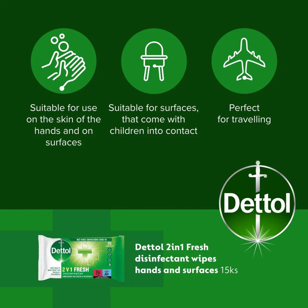 DETTOL Dezinfekční ubrousky 2v1 na ruce a povrchy 15ks