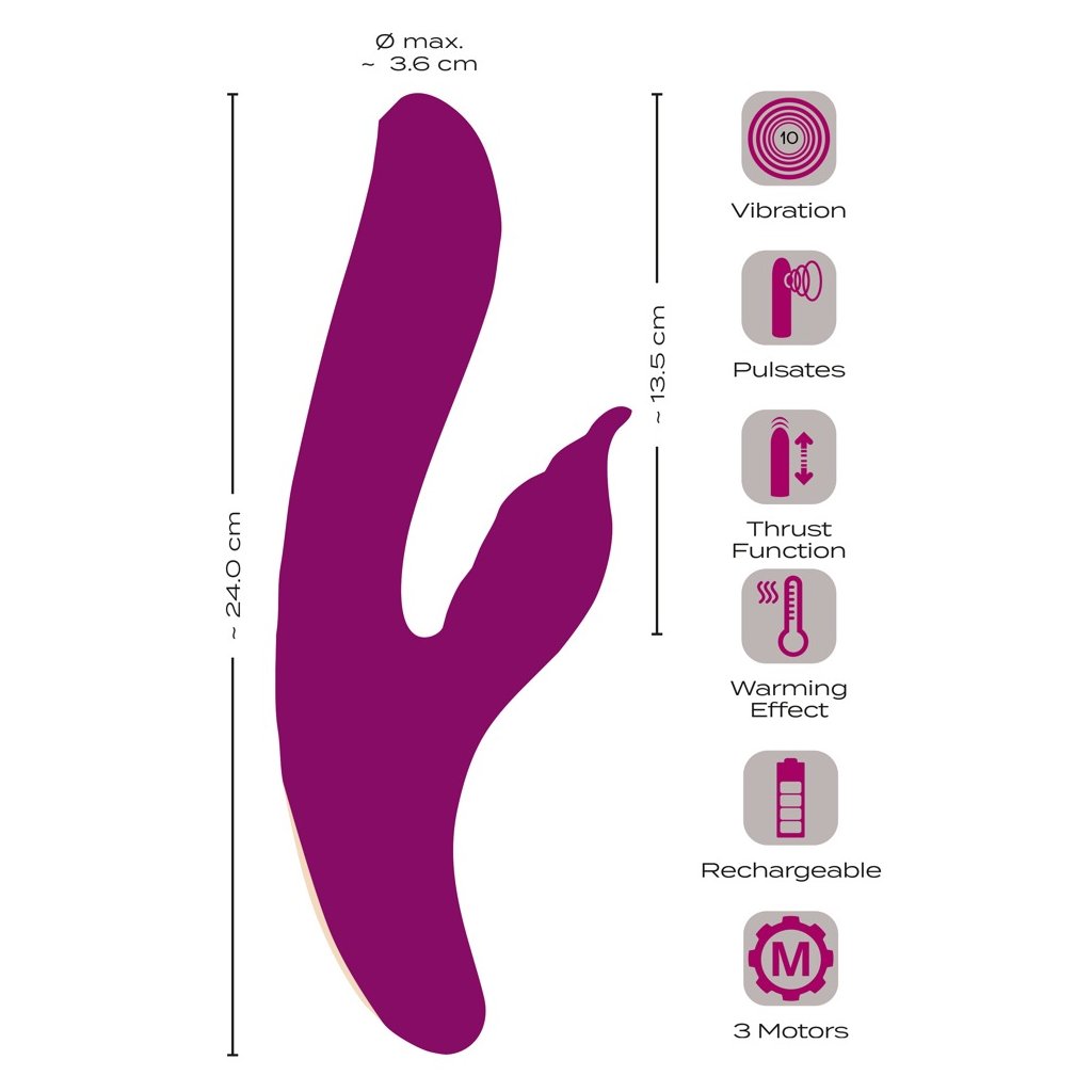 Zapomeň na obyčejné pomůcky – tenhle Rabbitvibrátor s 4 funkcemi ti nabídne úplně nový svět potěšení. Spojuje hluboké vnitřní uspokojení, vnější stimulaci klitorisu, pulsace na G-bod a dokonce hřejivou funkci, která tě rozpálí během pár vteřin. Co víc? Vibrátor se ti přizpůsobí a díky tichým motorům ho skoro neuslyšíš – jen ucítíš.