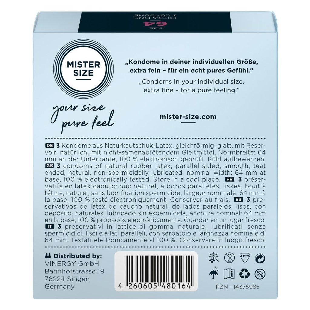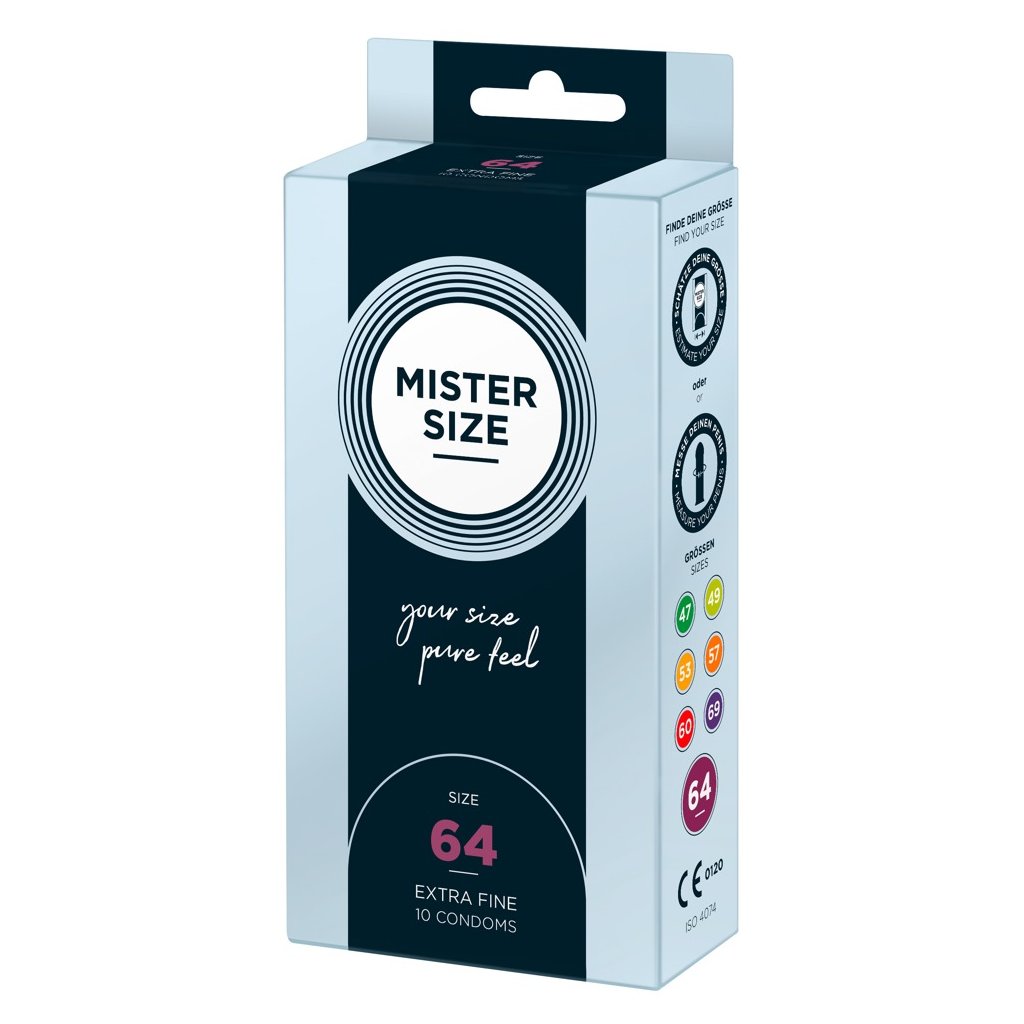 S kondomy Mister Size si každý muž najde ten pravý kondom, který mu perfektně sedí a neklouže. Díky tomu že kondom je ultra tenký, úplně zapomenete, že ho máte nasazený.