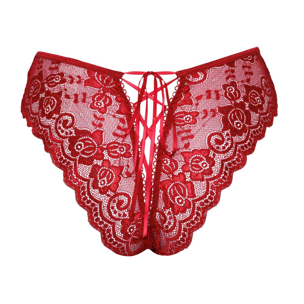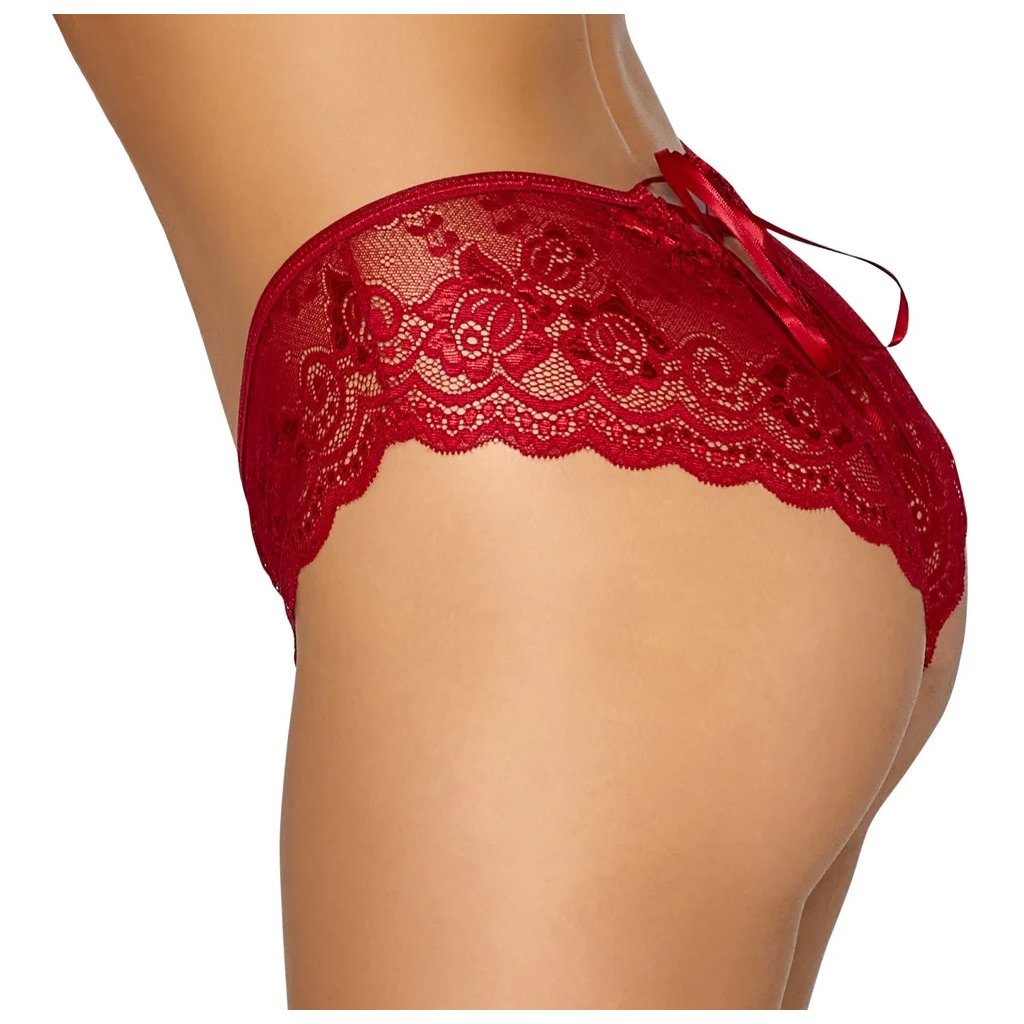 Krásné krajkové kalhotky v červené barvě, které mají otevřený rozkrok…… není tedy potřeba se zdržovat s jejich svlíkáním 🌶️.