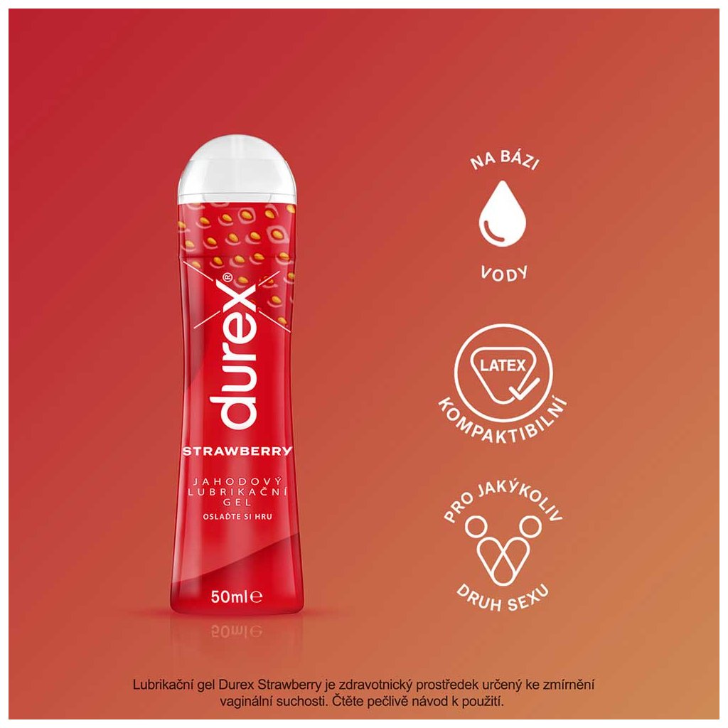 Lubrikační gel Durex gel Play jahoda je zábavný a ovocný způsob, jak si okořenit život. Vychutnejte si chuť a vůni jahod po celý rok pro lahodně intimní zážitek.