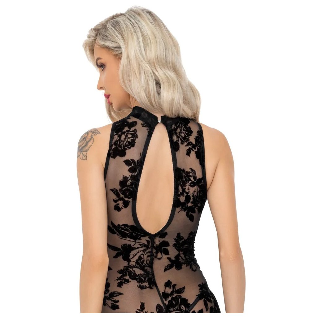 S těmito svůdnými mini šaty zahalíte své křivky do nejjemnějšího strečového tylu a ozdobíte je krásným sametovým květinovým potiskem. Díky elastickému, měkkému materiálu se můžete volně pohybovat a užívat si jemnou průhlednost vašeho těla. Šaty si můžete obléci rovnou na nahé tělo, budou ale vypadat úchvatně i pokud pod ně oblečete černou soupravu.