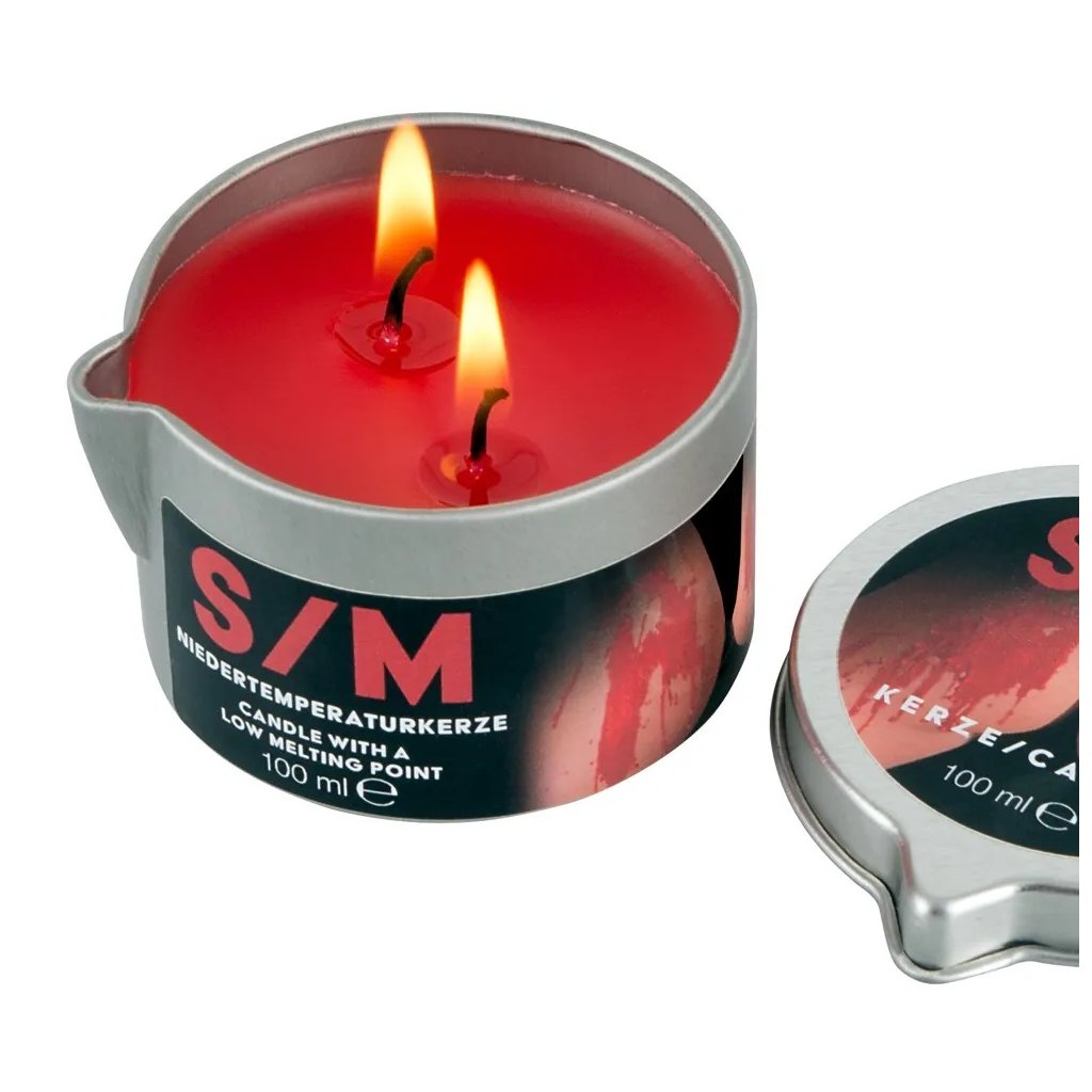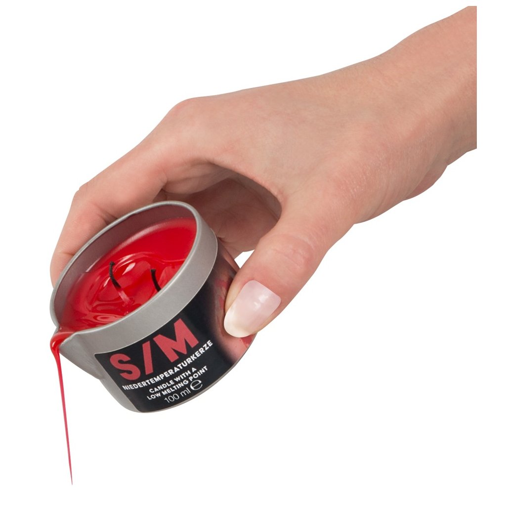 Červená nízkoteplotní SM svíčka v praktickém kovovém obalu s výlevkou. Svíčka je vyrobena z vosku, který se nezahřívá stejně jako obyčejné svíčky. S 2 knoty pro regulaci tepla. Vychutnejte si rozmazlování svého partnera s pocity brnění z horkého vosku na kůži. Vosk se snadno odlupuje od pokožky.