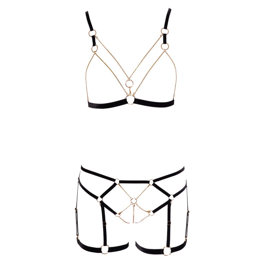 Tato erotická souprava bondage vzhledu je ušita z těch nejlepších materiálů. Příjemné sametové proužky látky s řetízky v barvě růžového zlata vzrušivě rámují vaše ňadra a intimní partie, zatímco provokativní krajka zahalí váš zadeček a poskytne vám pohodlí při nošení a zároveň vašemu protějšku provokativní pohled. Řetízky mají malé karabinky, které lze snadno odepnout a sundat. Stimulační řetízek v rozkroku kalhotek lze též odepnout stejně tak, jako nastavitelné stehenní popruhy.
