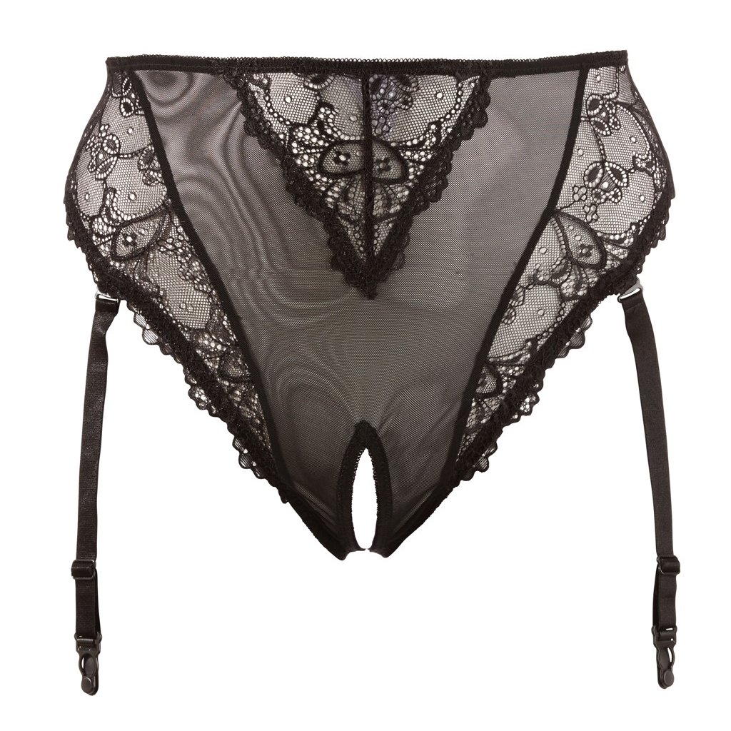 Tyto otevřené kalhotky s vysokým pasem, který zakryje bříško, jsou nejen neodolatelné na pohled, ale jsou také mimořádně pohodlné na nošení. Mají nastavitelné a odnímatelné podvazky. Punčochy nejsou součástí balení.