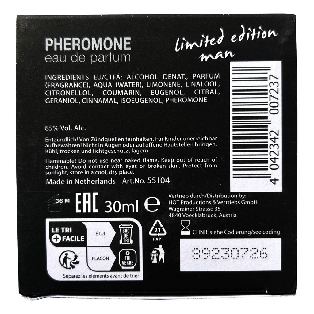Představujeme revoluční Eau de Parfum pro muže – parfém s feromony, který je klíčem k okamžitému zvýšení sebevědomí a neodolatelné přitažlivosti. Navrženo speciálně pro muže, kteří chtějí působit svěže, sebejistě a přitažlivě. Tento parfém je vaší tajnou zbraní pro každodenní výzvy i speciální příležitosti.