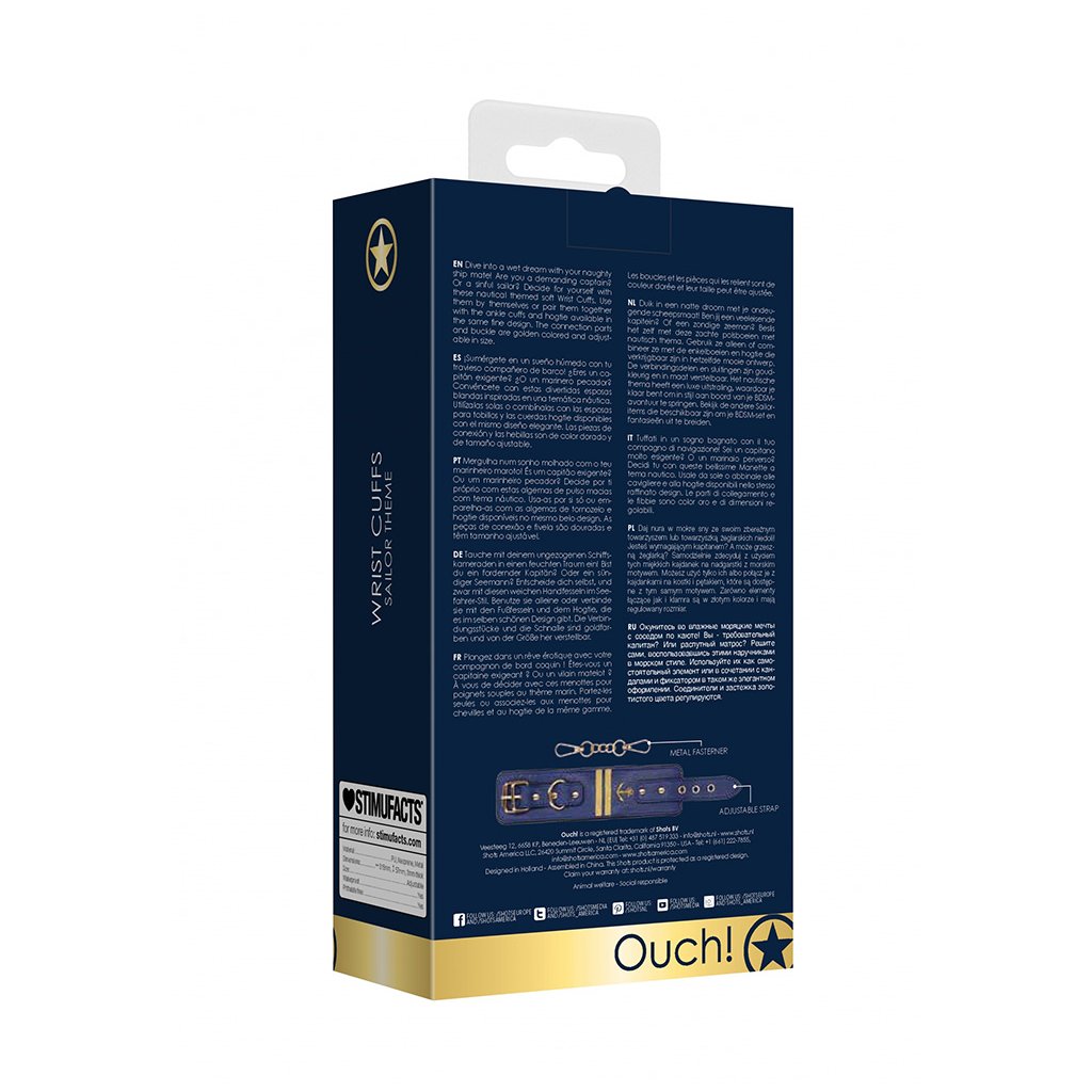 Obohaťte si BDSM hrátky s těmito elegantně vypadajícími odolnými pouty na nohy se třemi nastavitelnými velikostmi zaručují bezpečné a snadné zapínání pomocí kovové přezky. Zlatý kovový spojovací řetízek ⛓️ má z každé strany karabinku pro snadné připojení / odpojení. Z vnitřní strany jsou pouta vypolstrovaná příjemnou černou kožešinkou. Díky módnímu námořnickému stylu budou vypadat tyto pouta na nohy fantasticky 👍 v každé sbírce BDSM pomůcek.