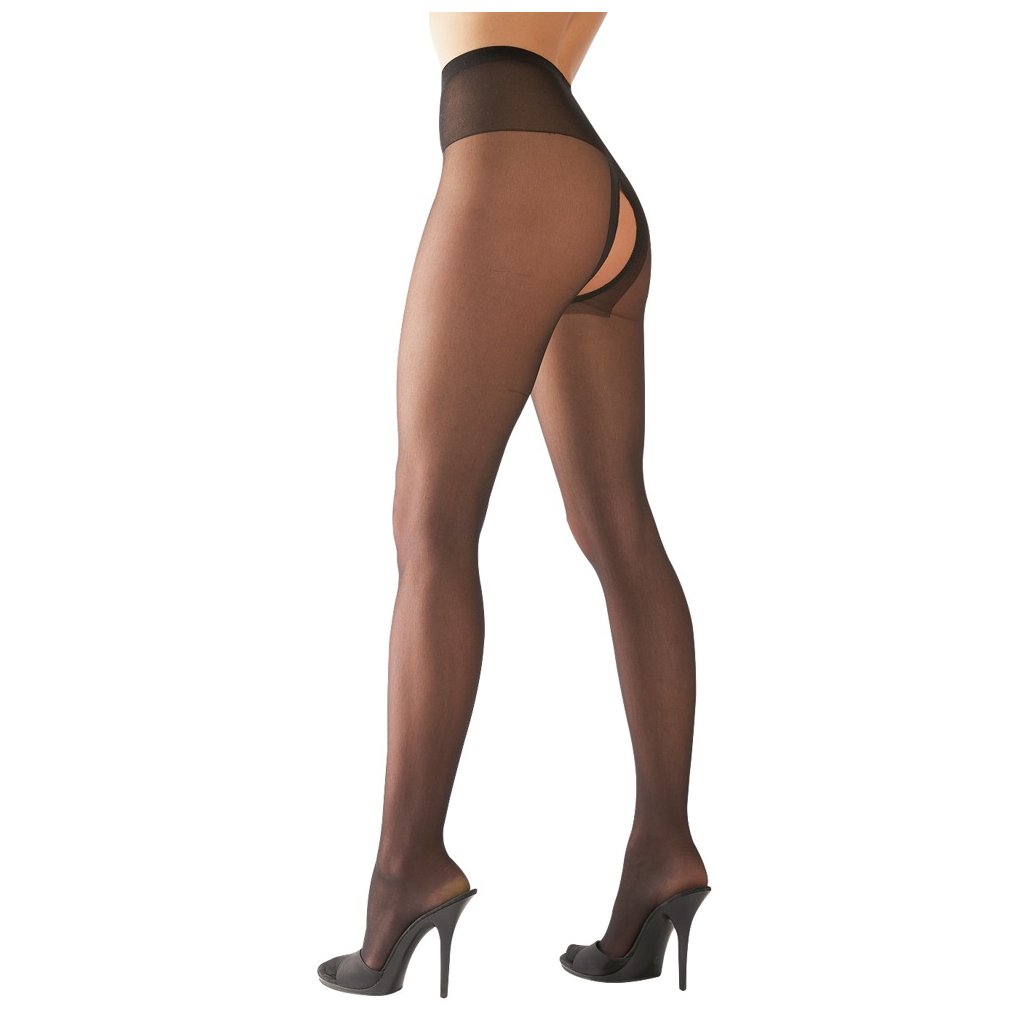 Punčochové kalhoty černé barvy s otvorem v rozkroku. Punčochy mají vyztužený elastický pas.