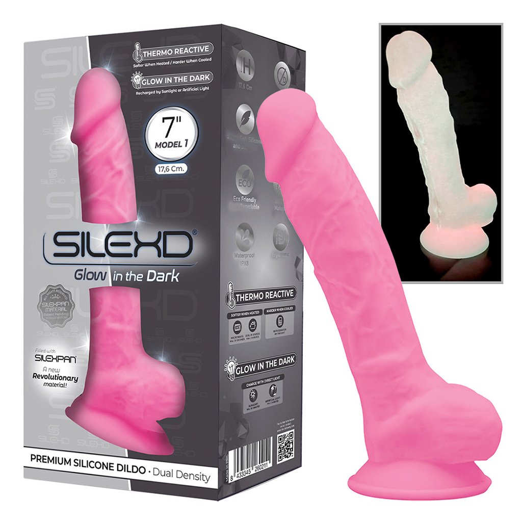 Realistické dildo v tělové barvě váš překvapí statným žaludem a vystouplými žilkami, které vás budou stimulovat při každém zasunutí. Díky jádru, které je vyrobené ze Silexpanu (patentově chráněný materiál) je dildo pevné na dotek, ale zároveň je i příjemně pružné. Můžete si ho upravit individuálně dle svých potřeb a po přiměřenou dobu si udrží požadovaný tvar (paměťový efekt). Pokud chcete, aby bylo krásně měkké, stačí ho ohřát v mikrovlnné troubě na max. 30 vteřin. Pokud naopak dáváte přednosti silnému a tvrdému penisu dejte ho zchladit do ledničky. Pro sterilizaci můžete dildo vyvařit ve vodě po dobu max. 2 minut. V noci stačí zhasnout světlo a můžete zažít vzrušující dobrodružství s perfektně zářícím penisem! Pro dlouhotrvající efekt svícení ve tmě umístěte dildo přímo pod zdroj světla, např. pod lampu.
