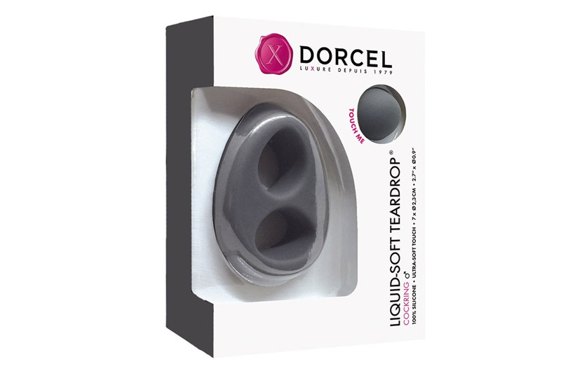 Erekční kroužek Dorcel je šedý, elastický a příjemný na dotek. Má dva otvory, na penis a varlata a jeho hlavní účel je udržet erekci silnou a penis tvrdší po celou dobu sexu.