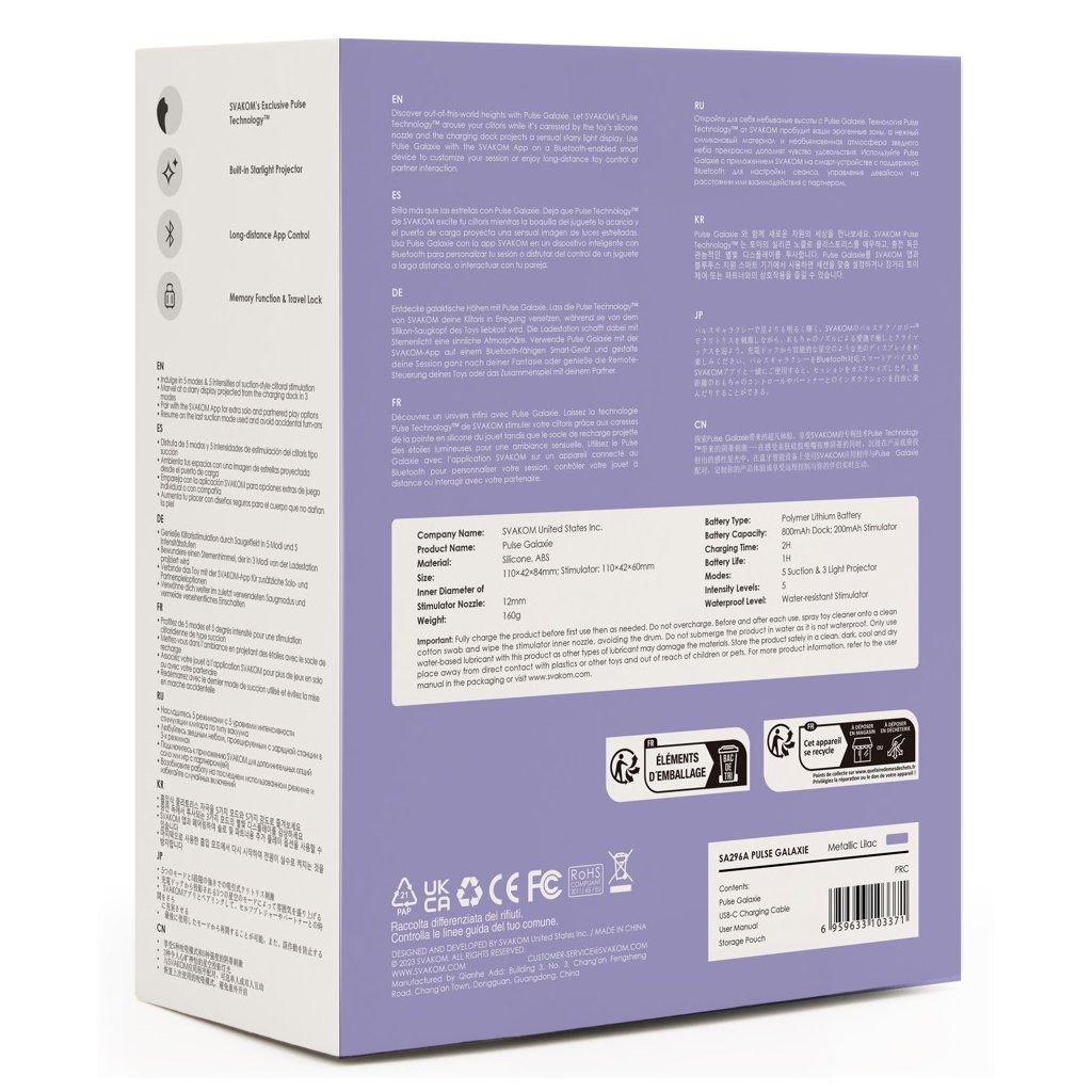 Překročte hranice běžného potěšení s Pulse Galaxie. Vychutnejte si náš patentovaný systém Pulse Technology™, který simuluje pocit orálního sexu, zatímco hvězdný projektor vytváří dokonalou atmosféru pro vaše intenzivní chvíle. Prožijte orgasmus, který je stejně nezapomenutelný jako světelná show nad vaší hlavou. A s naší SVAKOM aplikací můžete mít zábavu ve svých rukou - nebo nechat v rukou svého partnera, bez ohledu na vzdálenost.