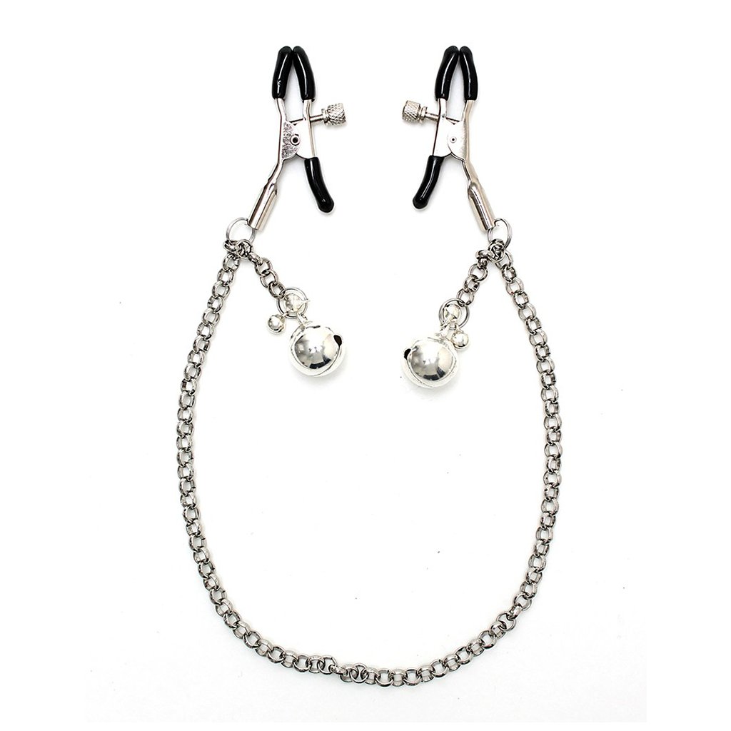 Svorky na bradavky propojené mezi sebou řetízkem se zvonícími rolničami.