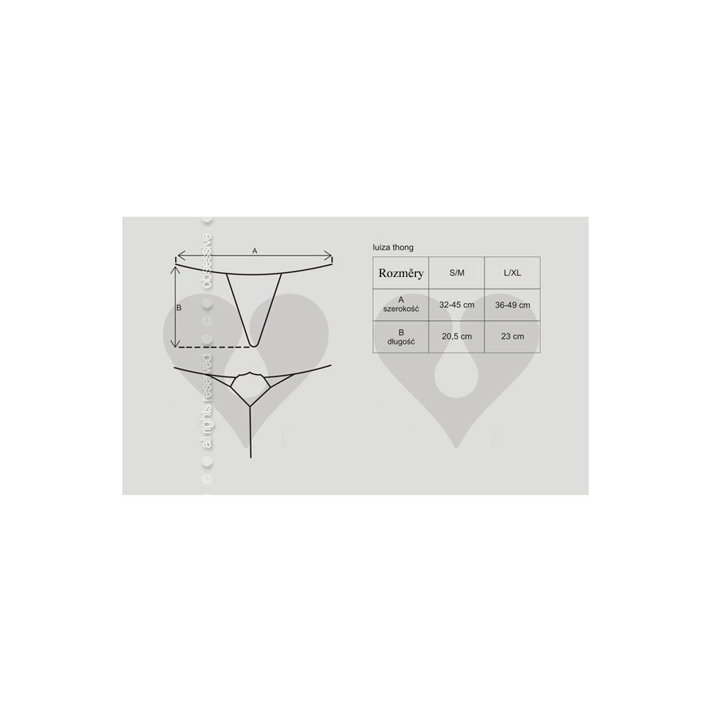Elegantní tanga Obsessive Luiza Thong vyrobena z elastické látky s květinovou výšivkou, která krásně ozdobí váš zadeček. Přední díl je síťovaný.