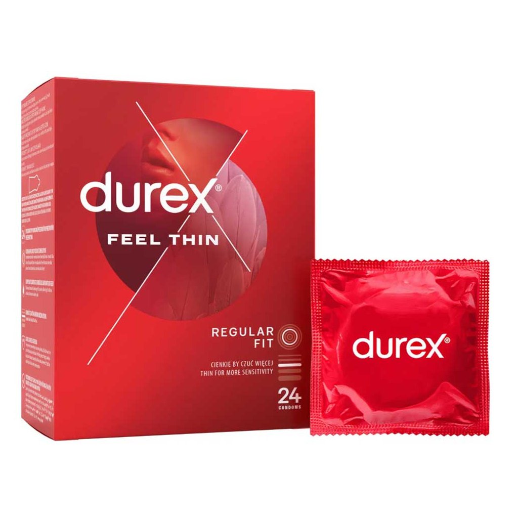 Hladké kondomy Durex Feel Thin zakončené rezervoárem jsou tenčí pro větší citlivost. Buďte si s vaším partnerem/partnerkou blíž bez ztráty ochrany a bezpečí.