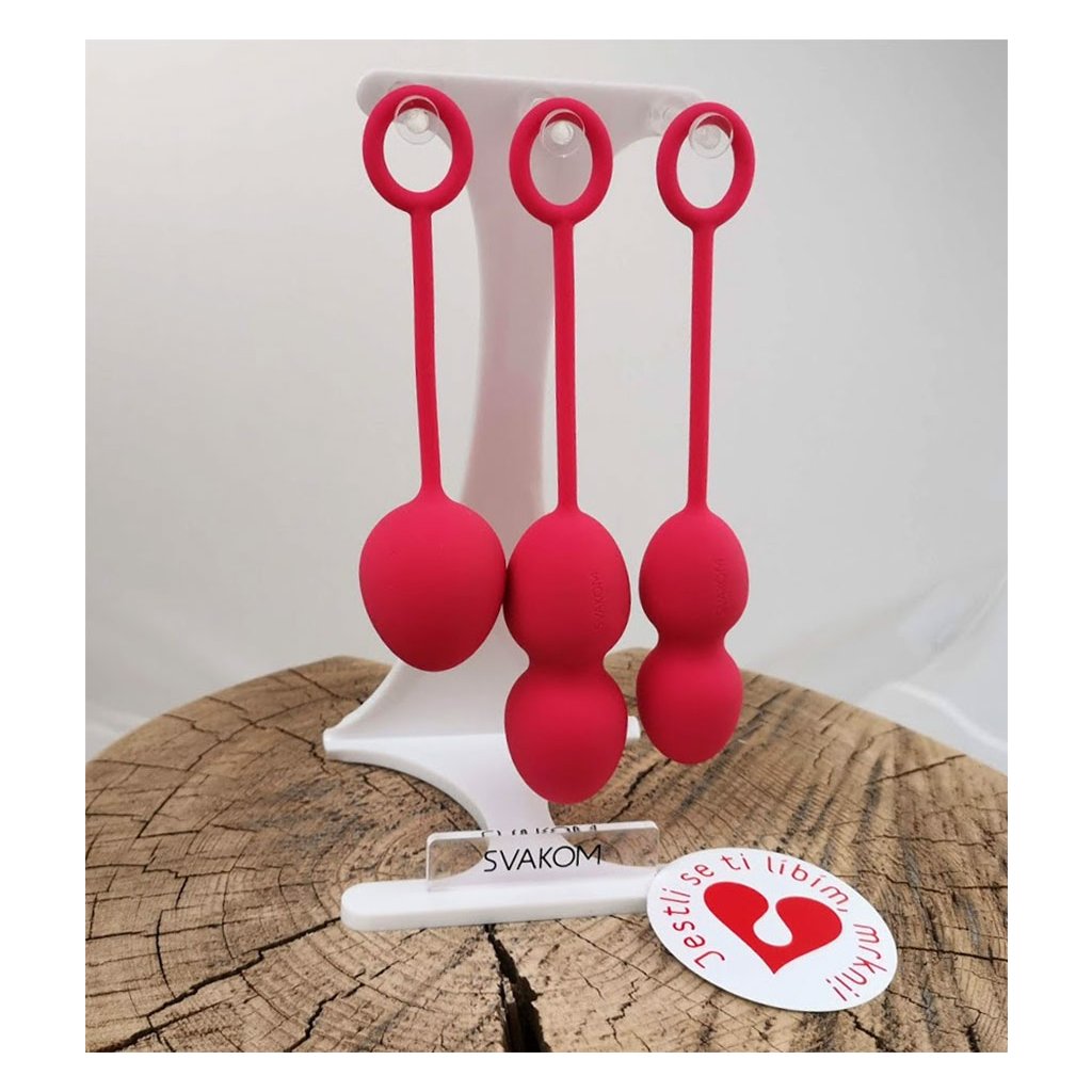 Venušiny kuličky Svakom Nova v červené barvě se skládají ze tří různých typů na dotek velice příjemných kuliček, které jsou určeny nejen pro vaše potěšení, ale také pro posílení pánevního dna, při potížích s inkontinencí nebo při rekonvalescenci po porodu. Vhodné pro ženy všech věkových kategorií i pro fitness úrovně.