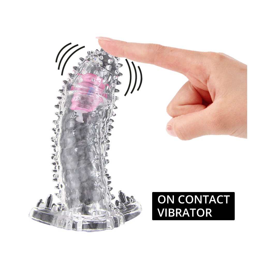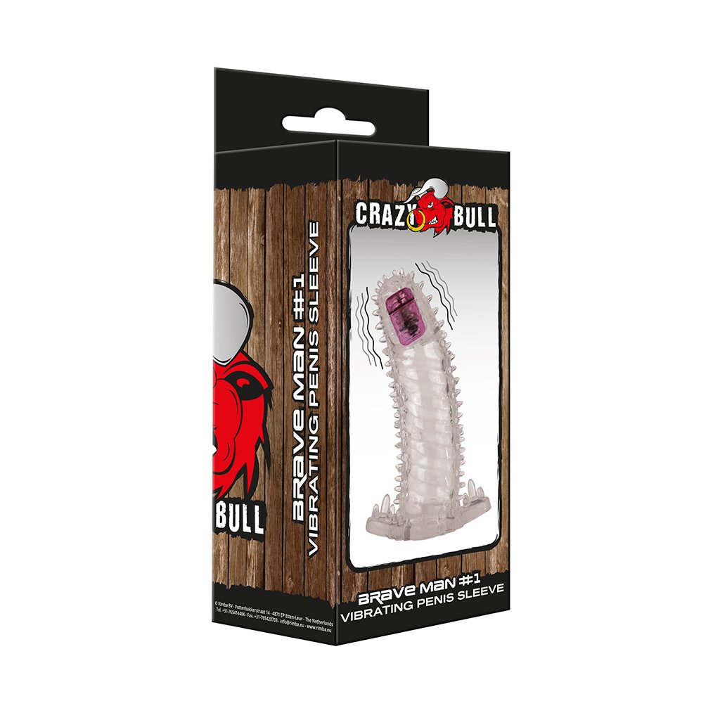 Vibrační návlek na penis Crazy Bull Brave Man jehož špičce je ukrytý mini vibrátor (jeden stupěn vibrace), který si při kontaktu zapne. Díky plné špičce, ve které je mini vibrátor, dojde k prodloužení vašeho penisu až o 4 cm. Po celém povrchu návleku jsou dráždícími výstupky, které maximalizují dráždící efekt