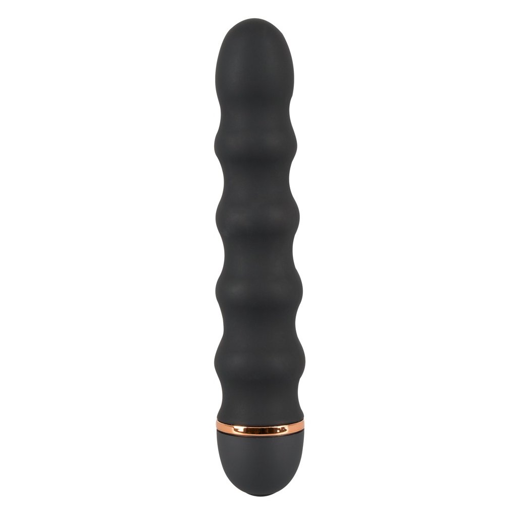 Černý vibrátor s pružným, vlnitým tělem a měkkým sametově jemných povrchem se vám díky jeho flexibilitě zcela přizpůsobí. Vyzkoušete a zažijte neopakovatelné stimulace.